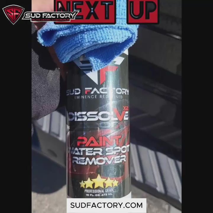 Sud Factory Premium Detail Products Dissolve X2 is the leader in water spot removal for paint, chrome, aluminum, mirrors, boats, and more. Dissolve is specialized in preventing paint and surface damages due to contamination that may ingrain into the surfaces causing permanent damages costing you hundreds to fix. It is developed to remove deep water spot stains and other build-ups before it’s too late. Removes permanently, not temporarily.