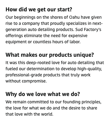 After trying 3 other products that did not remove the water spots on my ford truck I called a friend that used to detail cars . He told me another sud Factory. Your product worked so amazing. Two ounces did my entire truck . Amazing product.